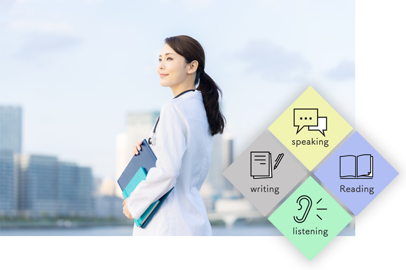 一人ひとりの目的とレベルに合わせたカスタマイズ教材で、医療現場ですぐに活かせるコミュニケーション力を育てます。